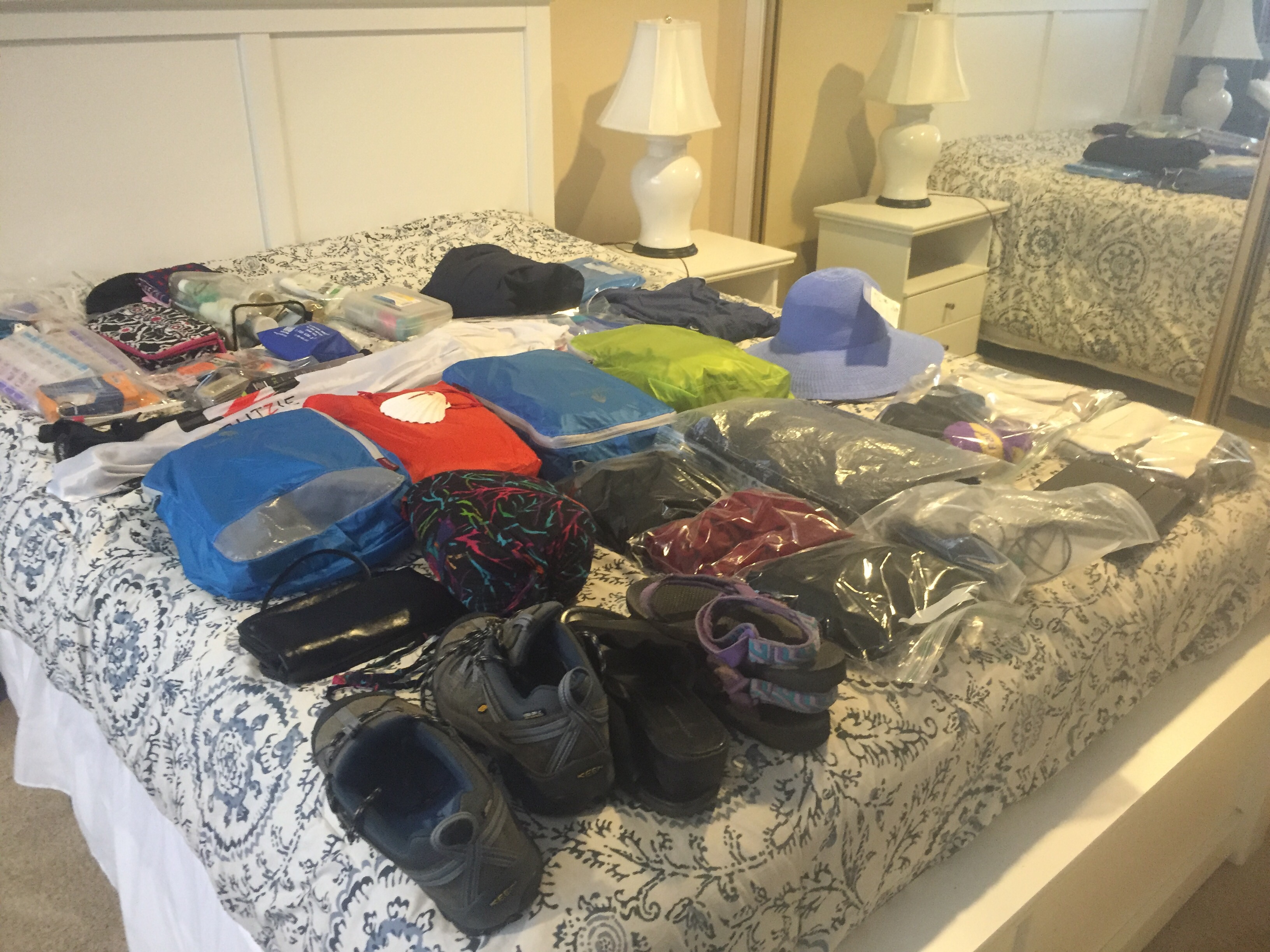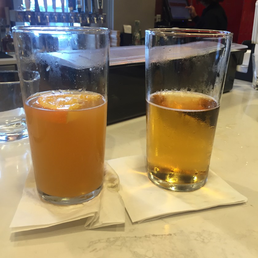I had planned to take a picture of us outside the front door with our suitcases as we got ready to leave on our pilgrimage. But we were too rushed, so instead you are seeing our last drinks in the USA before we board the plane to Spain. James with his Blue Moon including an orange slice and me with my Plain Jane Miller Light.